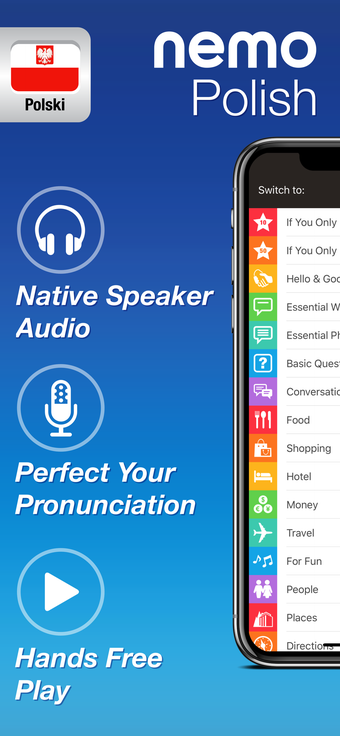 بولندية بواسطة نيمو هو تطبيق تعليمي مصمم لأجهزة iOS، بما في ذلك آيفون، آيباد، وساعة آبل. يركز هذا التطبيق على تعليم المستخدمين كلمات وعبارات بولندية أساسية بمساعدة صوت المتحدثين الأصليين، مما يتيح تجربة تعلم لغة غامرة. يمكن للمستخدمين إتقان نطقهم من خلال ميزة استوديو الكلام المبتكرة، التي تسمح لهم بمقارنة أصواتهم بأصوات المتحدثين الأصليين. تم هيكلة التطبيق ليكون مرن الاستخدام طوال اليوم، مما يجعله مثالياً لأولئك الذين لديهم جداول مزدحمة أو وقت محدود لتكريسه لتعلم اللغة.